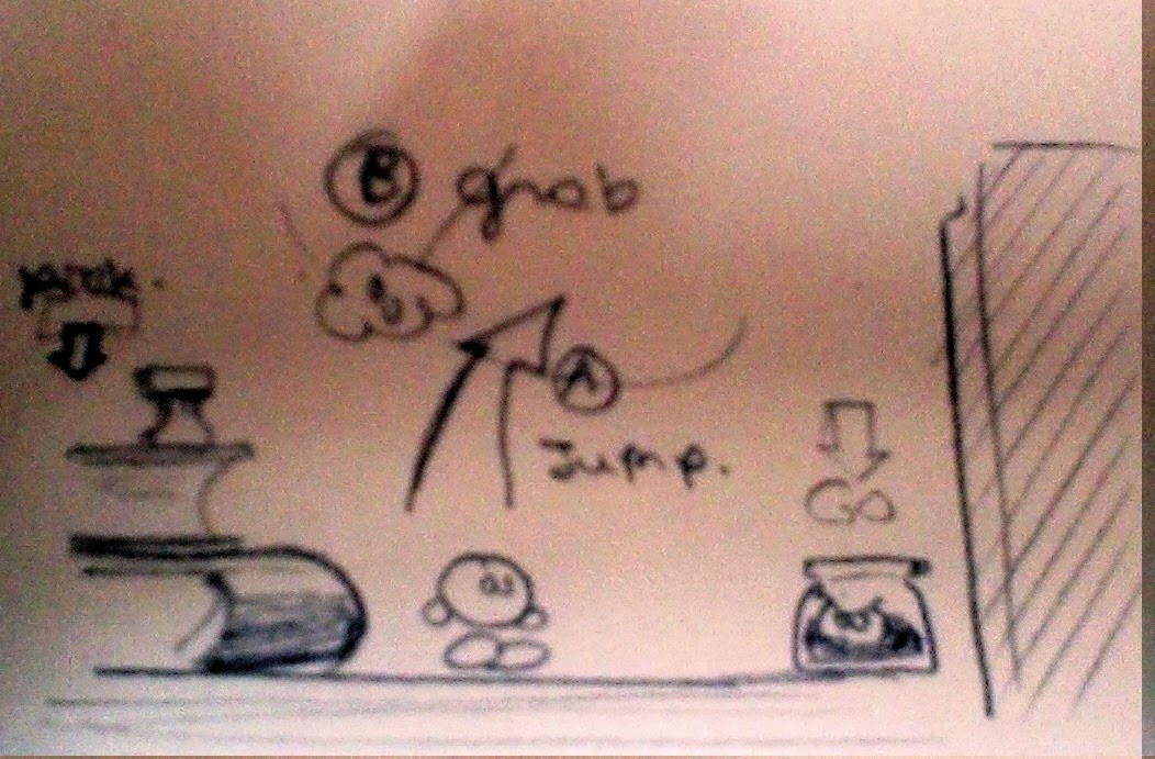J+12. Interférence de la VTJ prévues jusqu'au 16/10. L'écran d'accueil est prêt et j'ai un début de mécanisme pour encourager à explorer plus le niveau. Penser à passer plus de graphisme sur la couche "background" histoire qu'on voie mieux les gouttes d'encre.